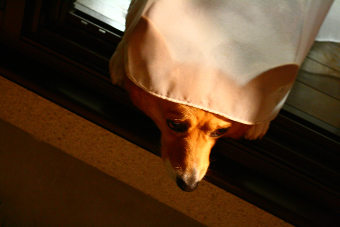 大魔王さまの写真館(仮) 愛犬オルィ~ヴ [コーギー♀] が、 家から顔を出してきた♪