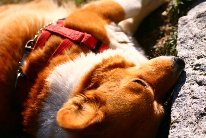 大魔王さまの写真館(仮) 愛犬オルィ~ヴ [コーギー♀] が、 目だけは 開けていた♪
