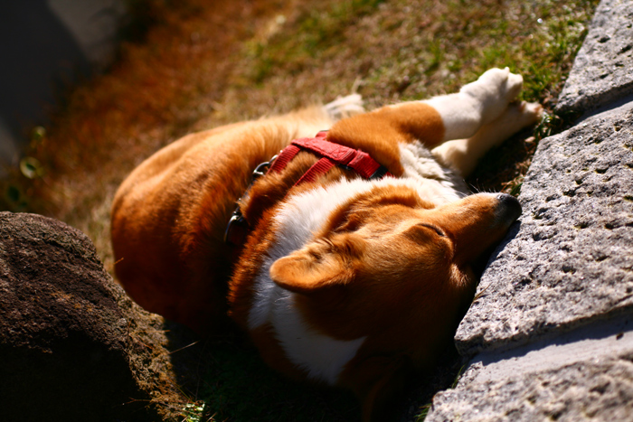 大魔王さまの写真館(仮) 愛犬オルィ~ヴ [コーギー♀] の、 目だけは 開けていた♪ (第二弾)