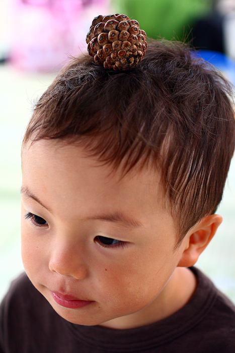 >まつぼっくりにご満悦かな? よく怒りませんね?