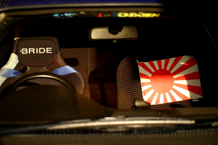 大魔王さまの写真館(仮) 愛車(EG6)の・・・ 助手席に土産で貰った旭日旗巾着(大和ミュージアム)をぶら下げて、 マクロ♪Ⅱ