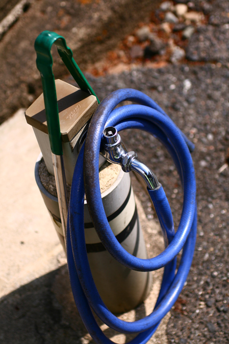>水道のホースは、なぜかお散歩写真の定番になってますね。