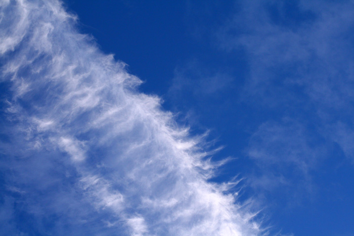 飛行機雲も風によって変化して・・・