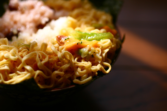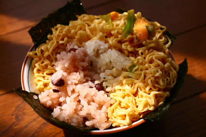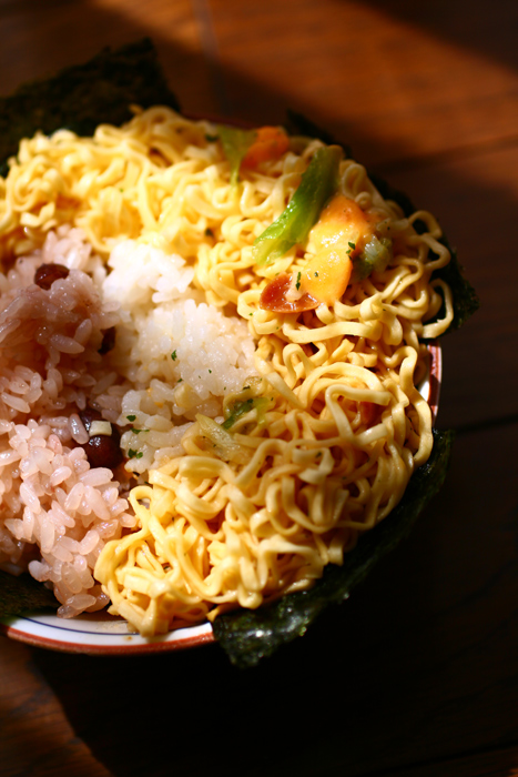 ⑤: 少し伸びた麺を 勇気を持って お膳に盛り付けます!