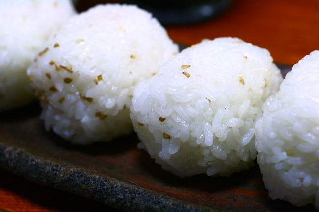 梅塩と 抹茶塩に分けて 握って貰いました。