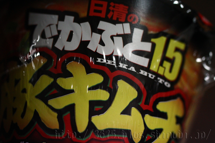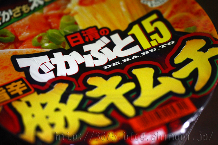 でかさも太さも1.5倍!大盛カップ! 1.5倍 (当社比) 90gの食べ応えのある太めんが、豚とキムチの旨味が感じられる醤油豚骨スープによく合います。--- 日清食品のホームページより 抜粋 ---