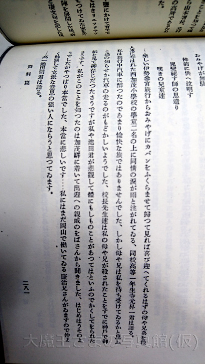 犯人の親戚で被害のなかった寺井元一の長男である冶が 被害者家族にいじめられ苦しんでる内容文です。
