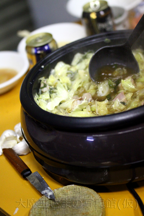 ブラストオフでの工場内ディナーな・・・ 小京都風モツ鍋で、 マクロ♪