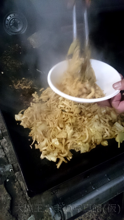 ブラストオフでの工場内ディナーな・・・ 小京都風ホルモンうどん+黒ビールで、 スマホ&マクロ♪