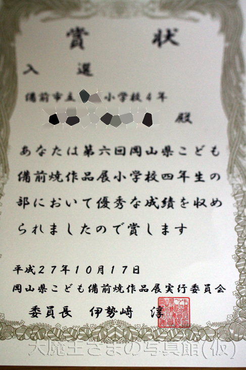 http://3615.blog.shinobi.jp/%E3%82%A4%E3%83%99%E3%83%B3%E3%83%88%E3%81%AA%E3%81%A9%EF%BD%A5%EF%BD%A5%EF%BD%A5/%E7%AC%AC%E5%85%AD%E5%9B%9E%E5%B2%A1%E5%B1%B1%E7%9C%8C%E3%81%93%E3%81%A9%E3%82%82%E5%82%99%E5%89%8D%E7%84%BC%E4%BD%9C%E5%93%81%E5%B1%95%E3%81%AB%EF%BD%A5%EF%BD%A5%EF%BD%A5%E3%80%80%E6%9C%89%E9%9B%A3%E3%81%8F%E5%85%A5%E9%81%B8%E3%81%97