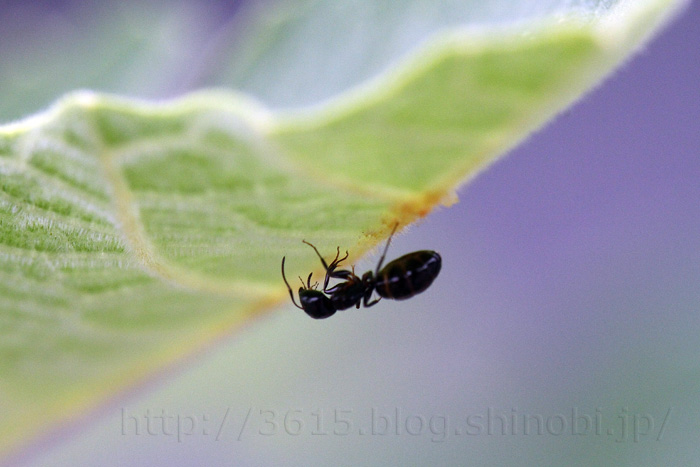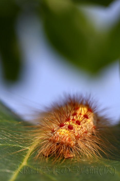 動きが遅いので・・・◇◆ イラムシ ◆◇幼虫に知らずに触れると激しい痛みに飛び上がる。 地方名のひとつ「デンキムシ(電気虫)」の由来である。これは外敵を察知した幼虫が、全身の棘の先から毒液を一斉に分泌するためである。 体を光にかざすと、すべての針の先から液体が分泌されていることがわかる。 刺激はかなり強く、場合によっては皮膚に水疱状の炎症を生じ、鋭い痛みの症状は 1時間程度、かゆみは1週間程度続くことがある。 卵をつぶしたり触れたりしてもかぶれるので注意が必要。 又、種類によっては繭に毒毛を付けている物がある。 刺された場合は、直ぐに流水で毒液と棘を洗い流すこと。 棘が残っていれば粘着テープなどで棘を除去する(患者はかなりの痛みを感じているので配慮が必要)。 その後、市販の虫刺されの治療薬を塗るとよい。 症状が酷い場合や目に入った場合は医師の治療を受ける。 正確な毒性分は解明されていないが、ヒスタミンやさまざまな酵素を成分とした非酸性の毒だとされている。 中和目的にアンモニア水を塗っても効果は無く、抗ヒスタミン剤やアロエの葉の汁を塗布するのが有効であるとされる。 ひどい場合は皮膚科等で処置をする必要がある。