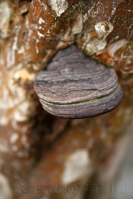 一般に、「猿の腰掛け」の名の通り、樹木の幹に無柄で半月状の子実体を生じるものが多いが、背着生のものや、柄とかさとを備えるものもある。子実体は一般に堅くて丈夫(木質・コルク質・革質など)であるが、一部には柔らかな肉質のものもある。 胞子を形成する子実層托は典型的には管孔状をなしているが、迷路状・ひだ状・鋸歯状などをなすこともあり、一つの種の中でも、子実体の生長段階の別、あるいは子実体の発生環境の影響などによって種々に変形することが多い。このサイズでは・・・--- ウィキペディアより 抜粋 ---