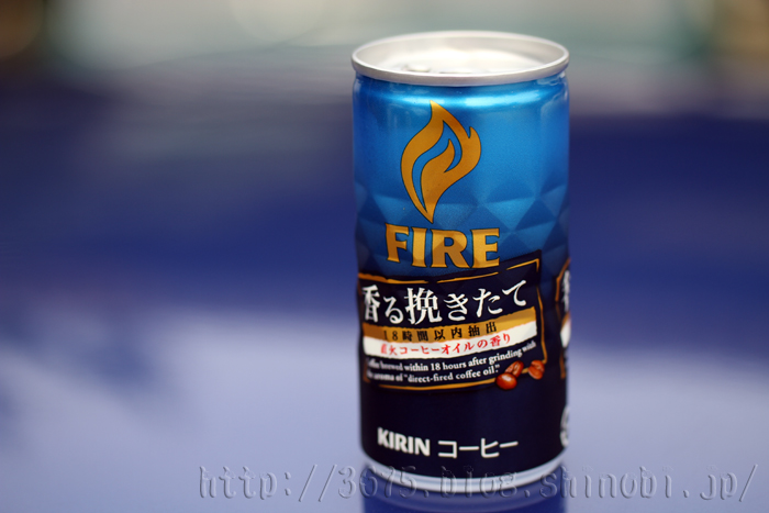「ファイア 香る挽きたて」は、高級豆を中心にブレンドし、「挽きたて」のおいしさにこだわった香り高くコク豊かな味わいの缶コーヒーです。ブレンドした豆を挽いてから18時間以内に抽出し、さらに直火仕上げしたコーヒー豆から搾った「直火コーヒーオイル」を加えることで、余韻のある香り立ちとコク豊かな味わいを実現しました。サムネイルが 粗いのですが・・・--- KIRIN H/P より 抜粋 ---